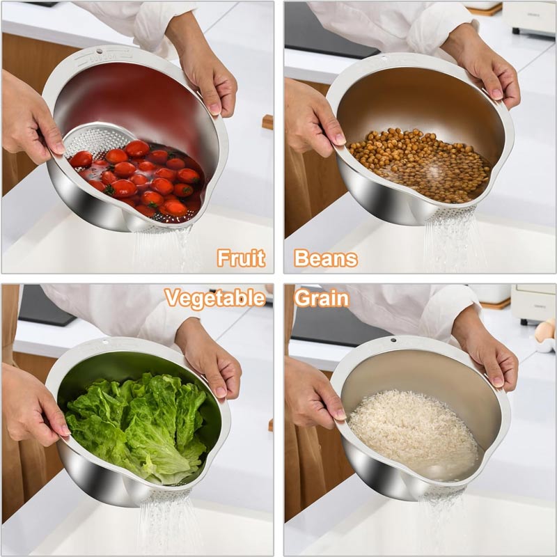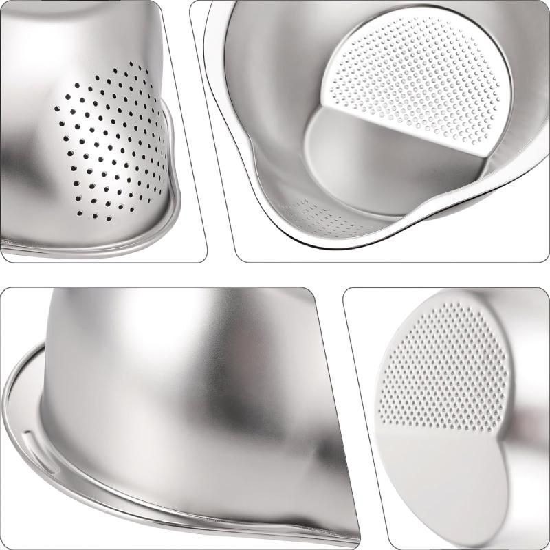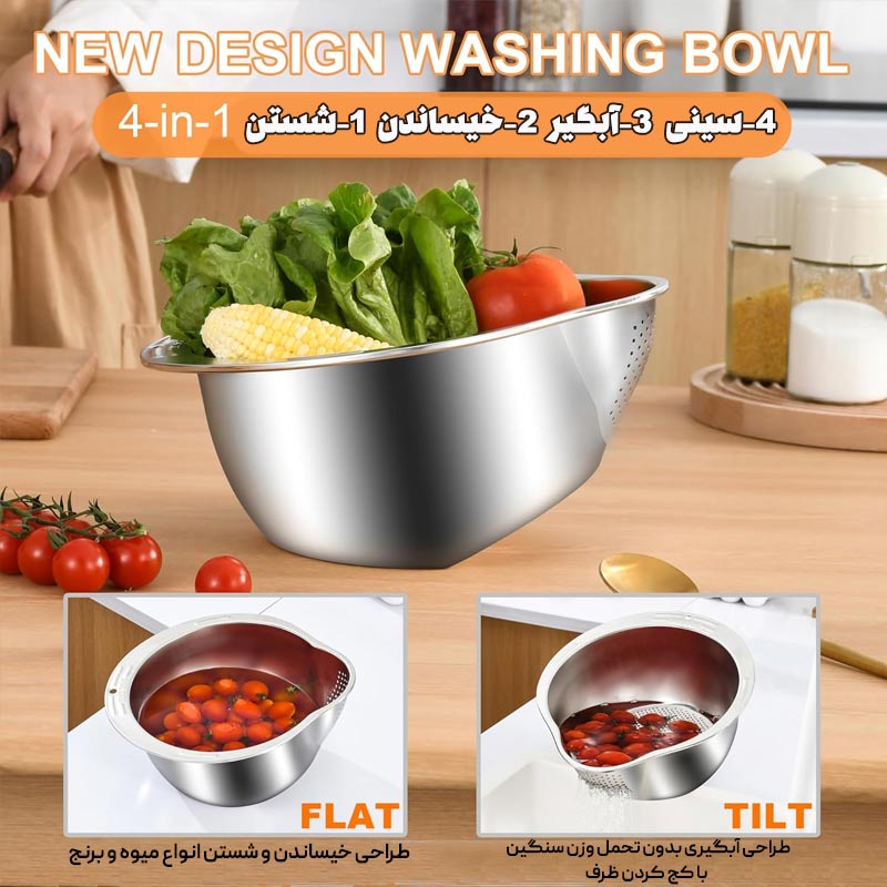 طراحی هوشمند و زیبای آبکش و برنج شوی استیل 4 کاره