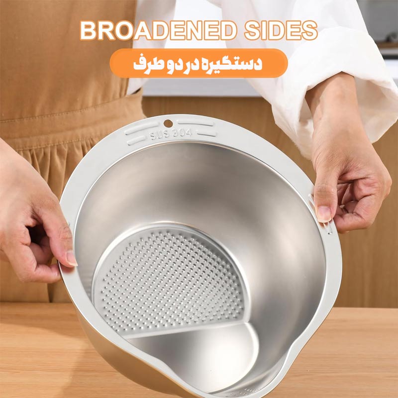 آبکش و برنج شوی استیل 4 کاره؛ ابزار چندمنظوره برای یک آشپزخانه حرفهای و منظم